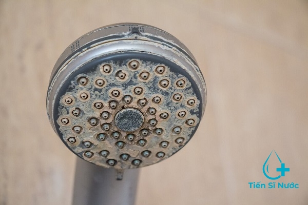 - Vòi nước, vòi sen bị rỉ sét, tích tụ những vệt trắng